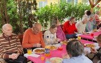 Prijetne trenutke pa jim skušamo pripraviti tudi zaposleni, ki organiziramo aktivnosti v manjših skupinah. Tako smo se sladkali z lubenicami, uživali ob pivu in ledeni kavi. V nekoliko drugačni obliki smo se letos družili na pikniku ob dobri jedači in pijači in se sladkali na sladolednem pikniku. Skozi vse poletje pridne stanovalke vestno skrbijo za domski vrt, tako, da smo že poskusili prve sadove, pripravljajo zelišča in dišavnice, izvedli smo tudi nekaj ustvarjalnih delavnic, redno prebiramo aktualne novice in si izmenjamo mnenja o aktualnih dogodkih, stanovalci redno telovadijo, praznujemo rojstne dneve, tudi sveta maša je na voljo vsak dan. V okrnjeni obliki potekajo tudi miselne, glasbeno-gibalne delavnice in rekreativne delavnice (tarča in bowling, odbojka). Na Krištofovo nedeljo je mašnik s prošnjo za varno vožnjo blagoslovil službene avtomobile in avtomobile zaposlenih.