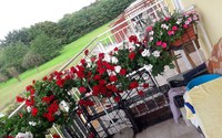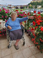 Ga Tomažič je nekaj svojih domskih prijateljic povabila in nam dovolila fotografirati svoj balkon, katerega krasijo vzorno negovane balkonske cvetice. Vsa pozornost, ljubezen, veselje in znanje o vzgoji in negi cvetja se ji poplača in odraža z bujnim cvetenjem. Kot zanimivost, da lahko občuduje in skrbi za svoje cvetje, ima stojala s koriti nameščena na notranjo stran balkona, tako res maksimalno uživa v svojem delu in njegovih rezultatih. Kljub temu pa njeno cvetje lahko občudujemo tudi izpod balkona in okolice zunaj.