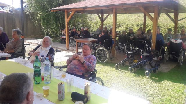 Rezervirali smo tudi 3 dneve, v katerih smo na vrtu po oddelkih izvedli Pizza party. Stanovalce smo pogostili s pizzami, dostavljenimi na dom, podjetja Vinska trta iz Voličine. Vse pohvale kuharjem in dobrodošla ideja in nekaj novega nam je popestrilo življenje in prineslo novo temo za pogovor in obujanje spominov. Katera pijača se najbolj poda k pizzi? Pivo, seveda, v zmerni količini, se razume.