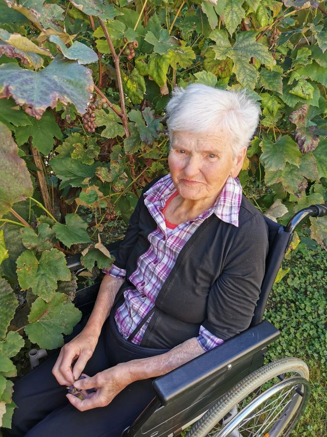 Ob prehodu v jesen pa smo, tako kot vsako leto, imeli trgatev. Grozdje, ki ga "oskrbujejo" naši stanovalci ob pomoči naših zaposlenih razveseli ves dom. Kako prijetno je pozobati domače grozdje ob prijateljih in tako dodati še en kamenček lepega spomina v mozaik našega skupnega bivanja.
