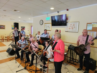V našem domu smo 25. maj letos obeležili z nastopom glasbene zasedbe Dvorjanski muzikanti. Zasedba 10 glasbenikov s pridihom tamburaškega ansambla so nas s petjem in igranjem prav zares pomladili. Njihov vodja, gospod Božo Čobec in povezovalka prireditve gospa Darinka Čobec sta poskrbela, da je bilo vzdušje odlično, stanovalci in obiskovalci pa navdušeni, da se kar nismo mogli posloviti.