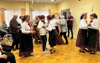 Pripravili so nam enourni program, kjer so se stanovalci lahko sprostili ob poslušanju petja, igranju na harmoniko ter se nasmejali ob skeču, ki sta ga pripravili igralki. Nekaj stanovalk in stanovalcev se je tudi z veseljem odzvalo na povabilo nastopajočih, in so se zavrteli, zaplesali v ritmih znanih melodij.