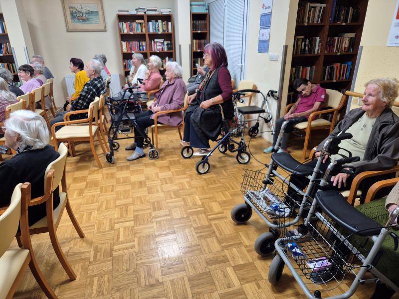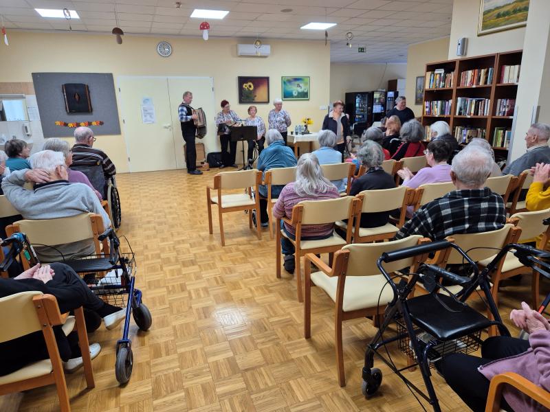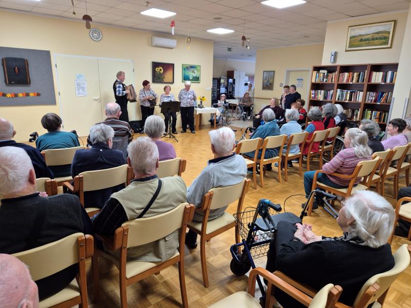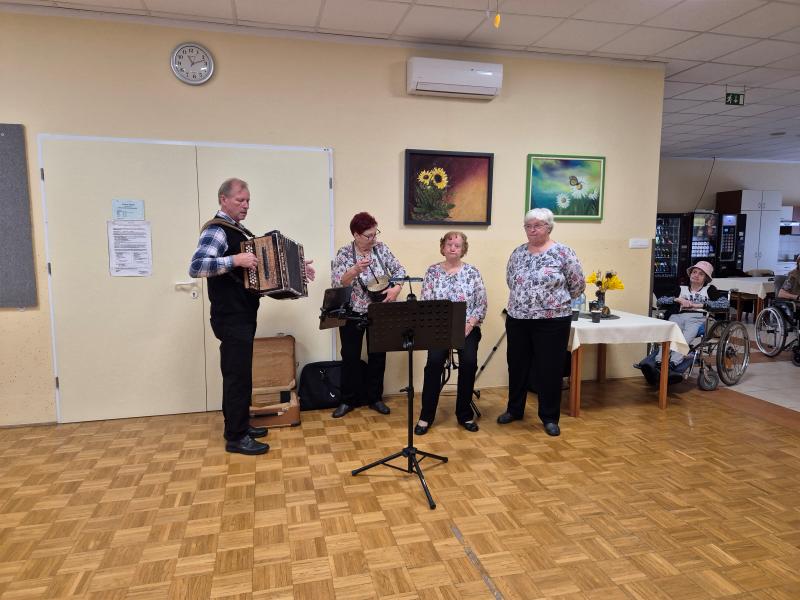 Praznik Martinovo smo v Domu sv. Lenarta obeležili z nastopom glasbeno-instrumentalne skupine Rožmarin. Že ob prvih taktih je skupina s svojo značilno energijo, prepletom ljudskih napevov in sodobnejših pesmi pritegnila pozornost stanovalcev in obiskovalcev. Posebno zanimanje so vzbudila njihova doma izdelana starinska glasbila in seveda nepogrešljiva harmonika.