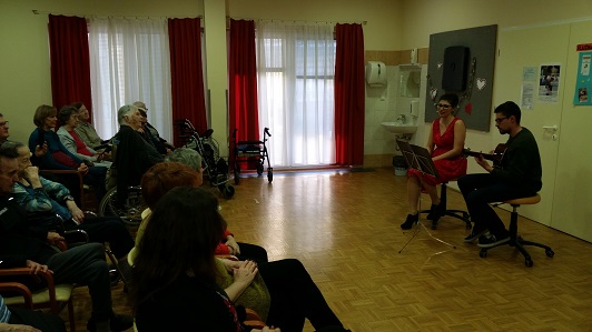 Z izbrano slovensko pesmijo sta prireditev polepšala solistka Monika Bezjak in kitarist Martin Lampret.