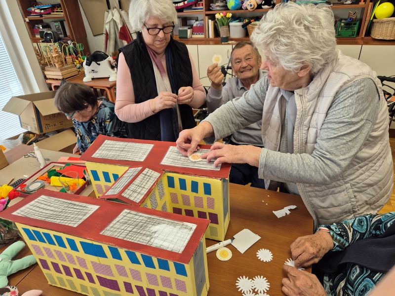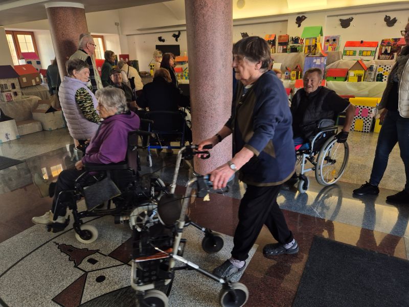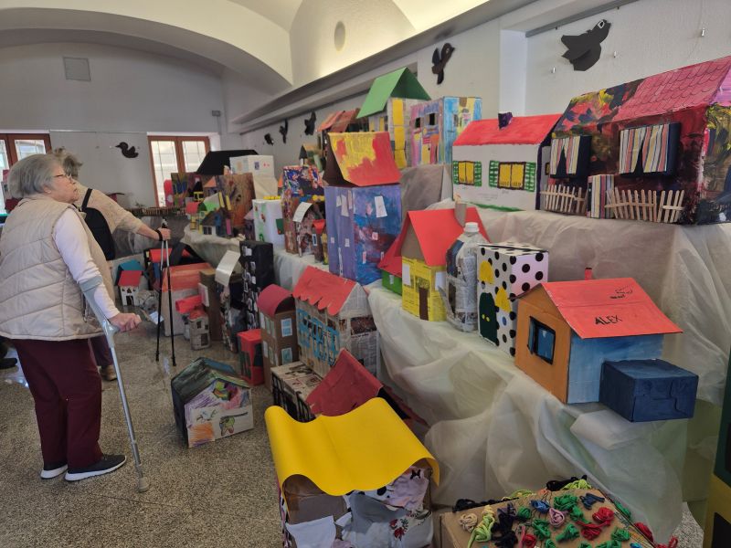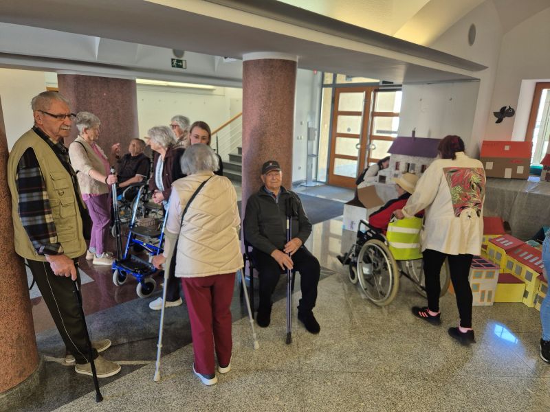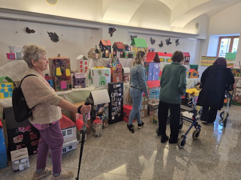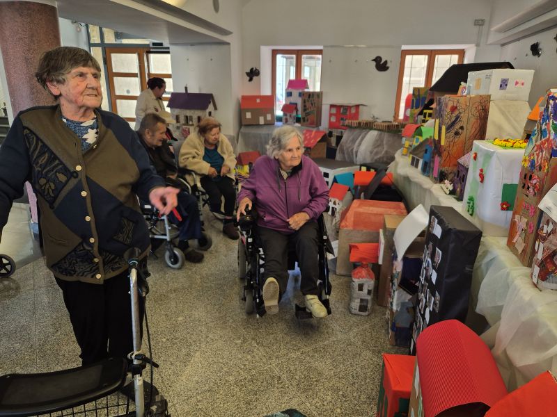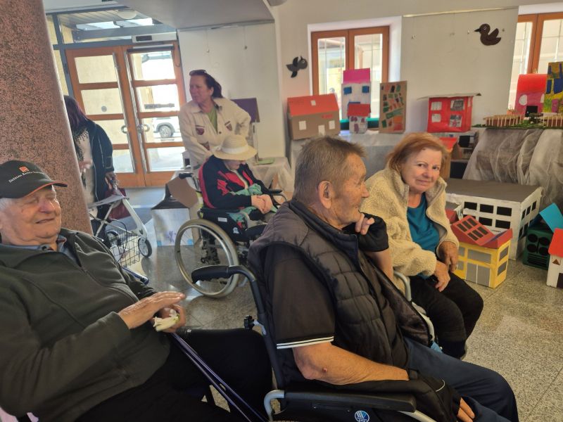 Stanovalci Doma sv. Lenarta so si v spremstvu delavk ogledali to pisano in navihano razstavo, za katero so tudi sami prispevali maketo-Dom sv. Lenarta. Niso se mogli načuditi, kaj lahko nastane iz odpadnih materialov, s pomočjo dobrih idej, iznajdljivosti in seveda pridnih rok, ki so postavile na ogled to čudovito mesto.