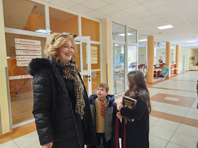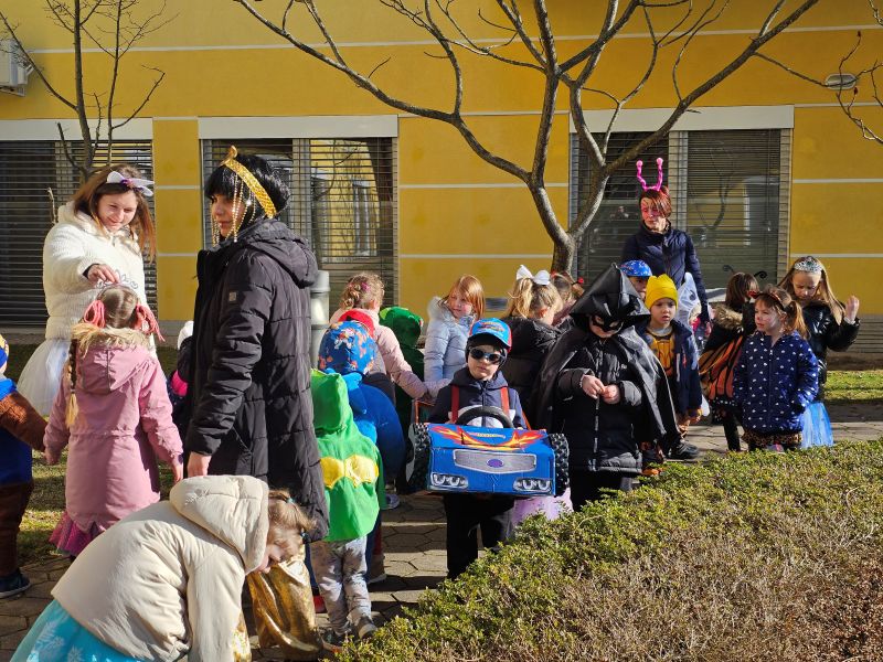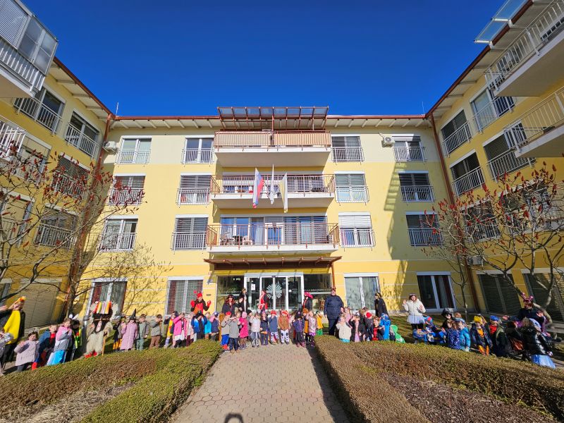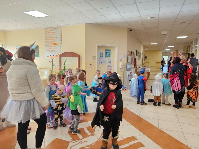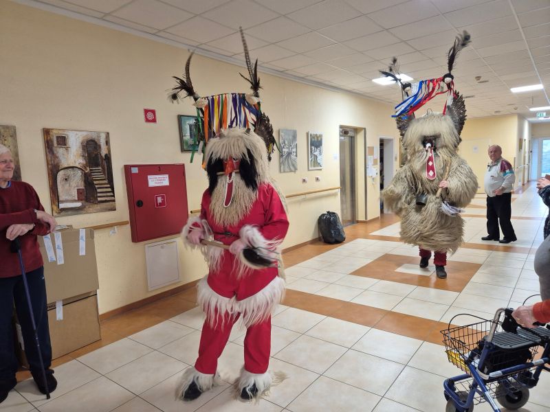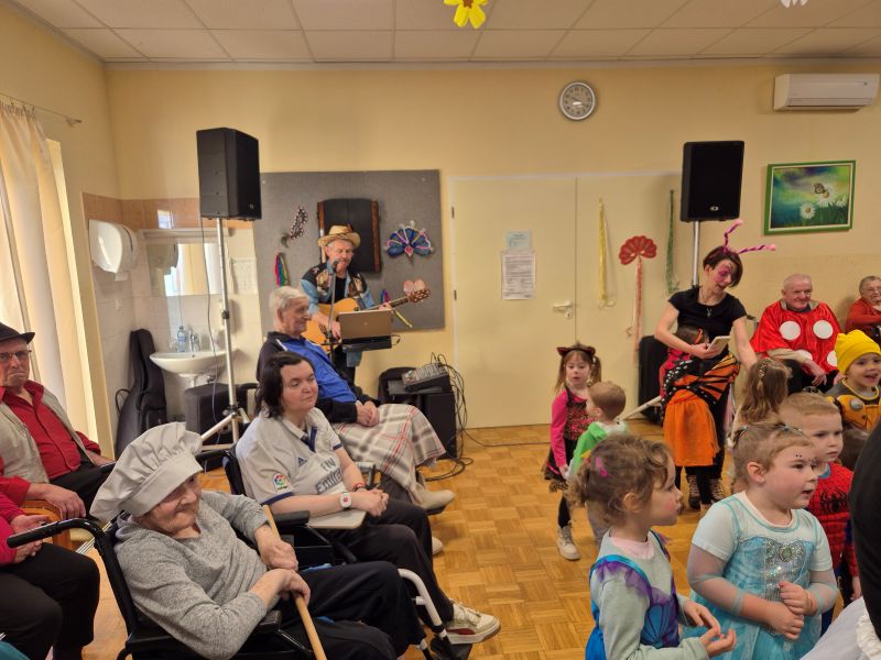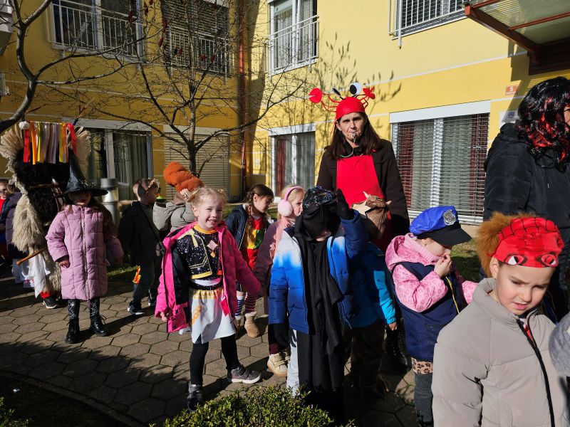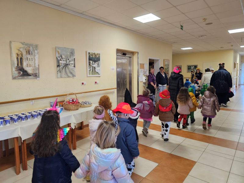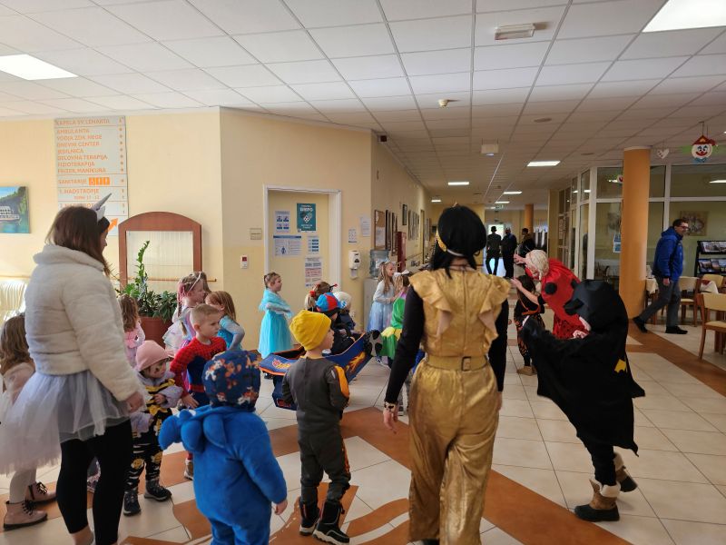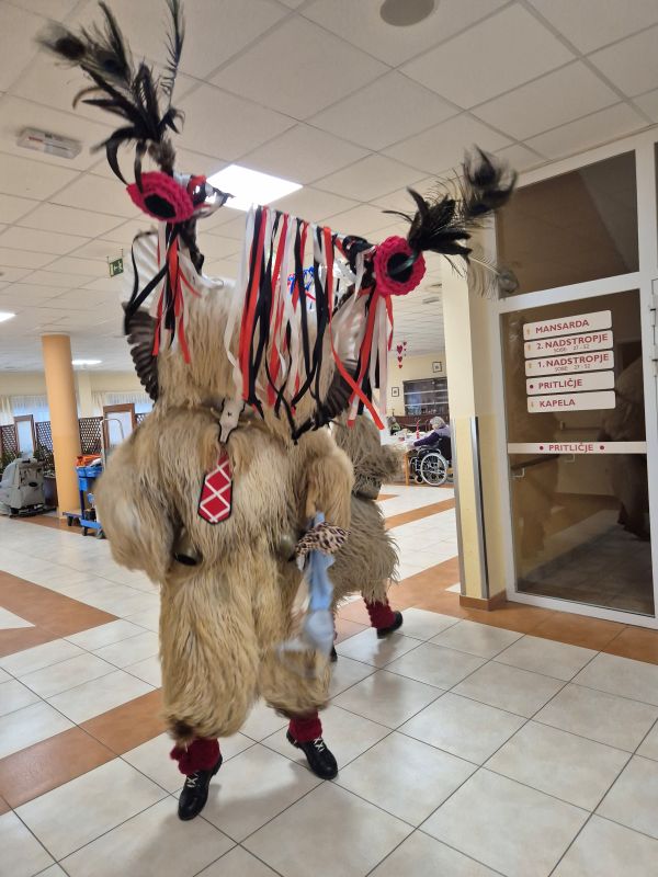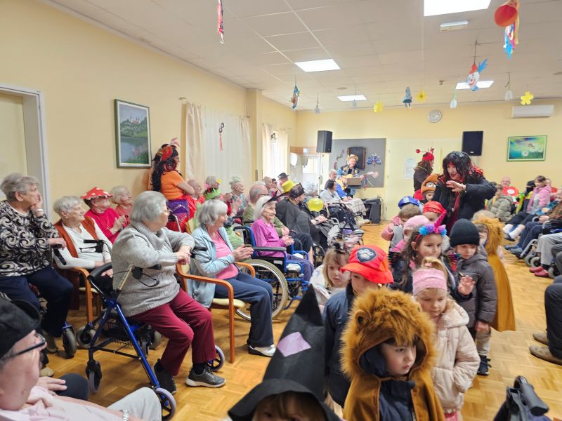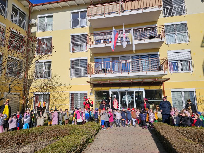 Obiskali so nas otroci iz Vrtca Lenarta, v pustnem sprevodu so se nam predstavili v svojih priljubljenih maskah in opravah ter z nami zarajali ob glasbi.