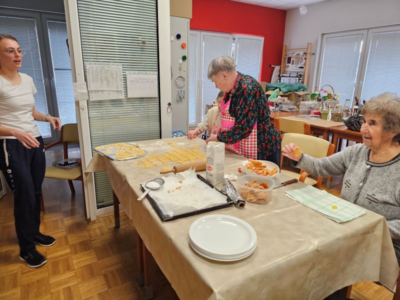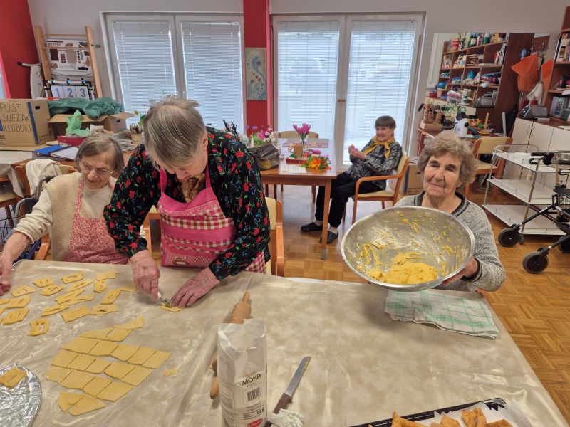 Kuhinje pa v tem času ponudijo priložnost spretnim kuharicam, da pripravijo vrhunske krofe ali flancate. Tudi stanovalke se rade udeležujejo teh kuharskih podvigov in skupaj nam uspe in smo nadvse zadovoljni, ko lahko povabimo na priboljšek še druge.