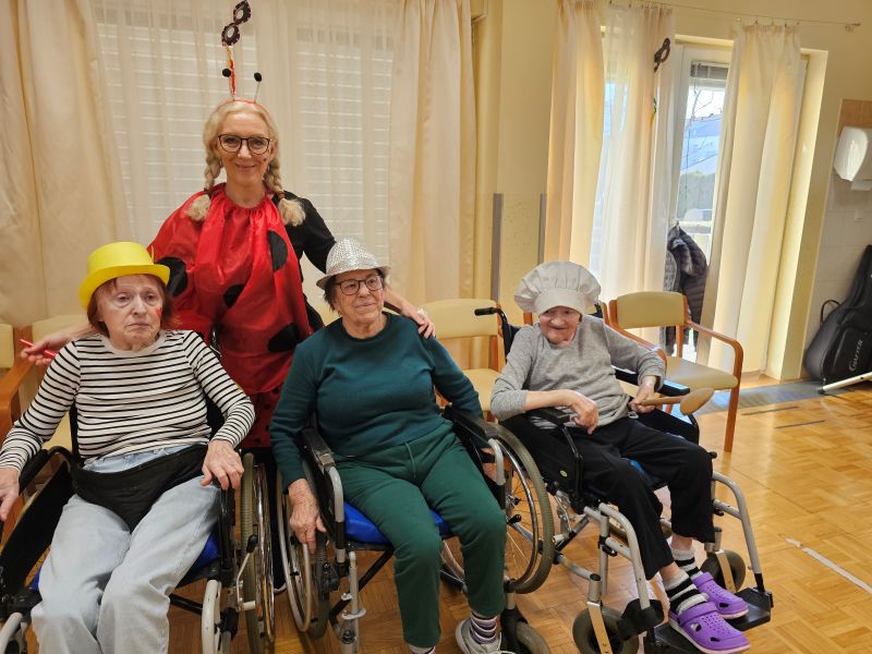 Na pustni torek, 17. februarja smo v Domu sv. Lenarta in Domu sv. Agate za stanovalce v dopoldanskem času pripravili veselo pustovanje. Veliko stanovalk in stanovalcev se je z veseljem in navdušenjem udeležilo tega navihanega in nagajivega dogodka. S pomočjo delavk so si nadeli pustne oprave in se za ta dan spremenili v druge osebe in podobe. Bili so pisana, vesela in sproščena druščina.