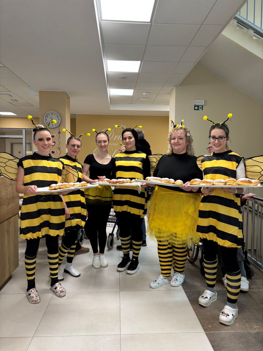 V domu sv. Agate pa tudi ni manjkalo zabave, veselja in glasbe. Tam so za glasbo in petje poskrbeli pevci iz Selc, ki so se prav tako našemili in spremenili v pustni travnik, poln rož. Odlično so se ujeli v prostor, poln čebelic, saj so se stanovalci in delavci maskirali v čebelice. Za sladki del pa so poskrbele delavke, ki so spekle sladke in dobre krofe.