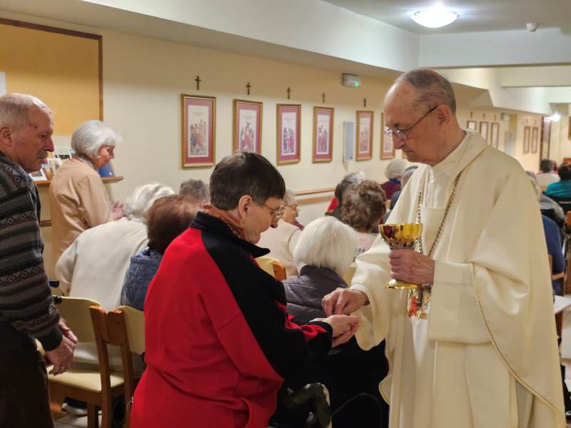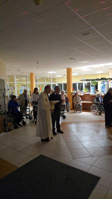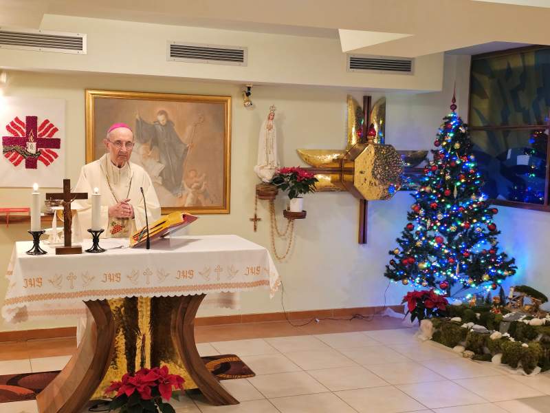 Na praznični večer smo se tudi letos ob 16.00 zbrali pri slovesni sveti maši, ki jo je v domski kapeli sv. Lenart daroval upokojeni nadškof, msgr. dr. Franc Kramberger. S petjem jo je obogatil domski pevski zbor, ki ga vodi Žan Jerenko. Božični praznični pozdrav je obiskovalcem svete maše izrekel tudi direktor doma, Zlatko Gričnik.