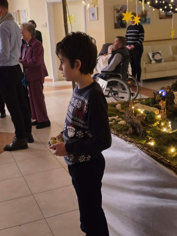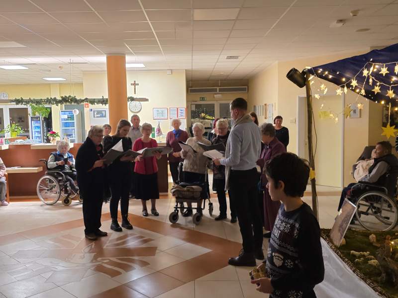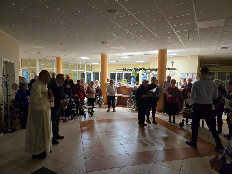 Sveti večer smo obhajali tudi v Domu sv. Agate, kjer je polnočnico daroval lenarški župnik, gospod Marjan Pučko. Tudi tam so stanovalci, zaposleni in svojci v molitvi, pesmi in skupnem doživljanju božične skrivnosti ob jaslicah obhajali večer, ko se je rodila Ljubezen za vse – z mislijo na to, da Bog ne pozabi nikogar in da je vsak človek dragocen v njegovih očeh.