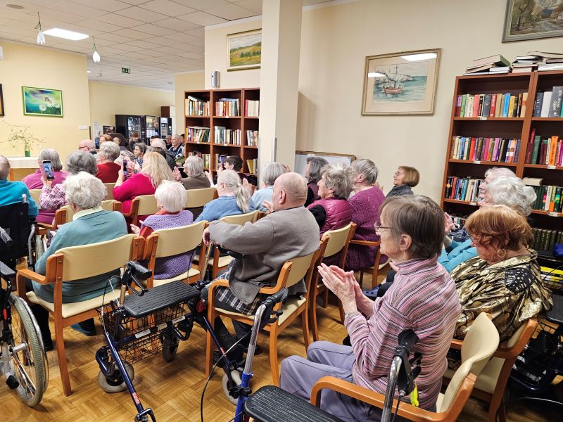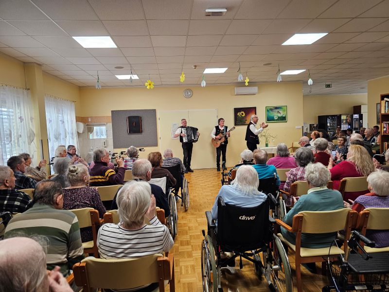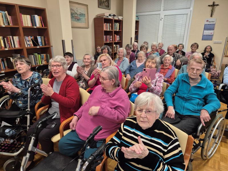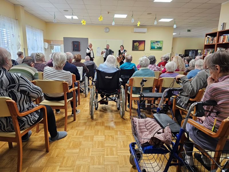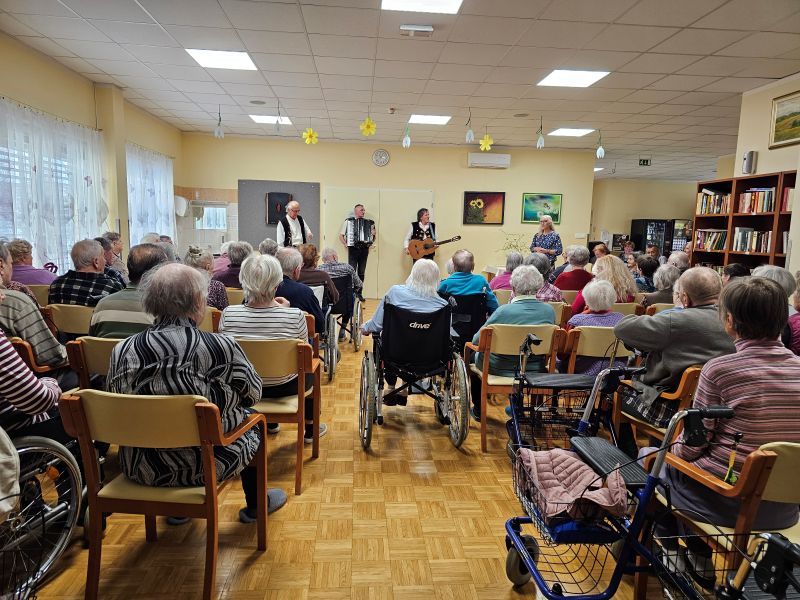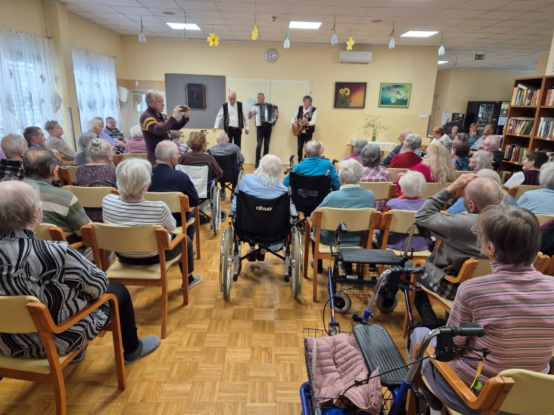Za stanovalke in stanovalce je to bila lepa glasbena osvežitev in sprostitev, koncert z dušo in za dušo. Z njimi smo v mislih odpotovali in odjadrali v lepo, sončno Dalmacijo. Ob nežnih spevnih dalmatinskih melodijah smo se sprostili, pozabili na skrbi in se v mislih odpravili na raziskovanje obale, uživali v topli sapici, se odpočili na sončku in v senci ...Veliko dalmatinskih pesmi stanovalke in stanovalci dobro poznajo, tako da se je petje razlegalo po pritličju doma, glasbeniki pa so na veliko navdušenje zaigrali in zapeli tudi po slovensko, na melodijo »V dolini tihi«.